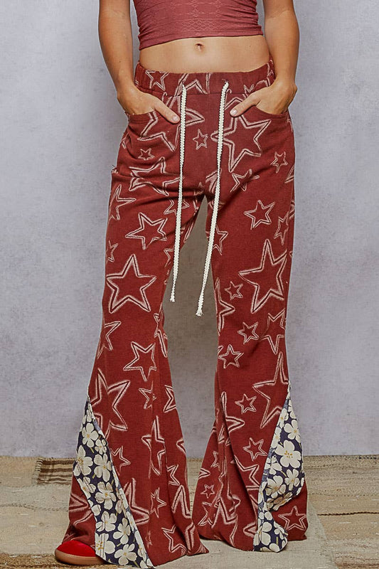 Vintage washing star pattern edge cut flared knit pants