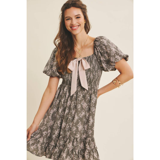 Floral Smocked Mini Dress With Bow