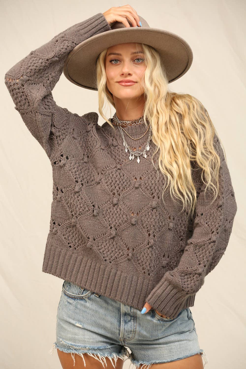 Crewneck Sweater Airy Open Stitching